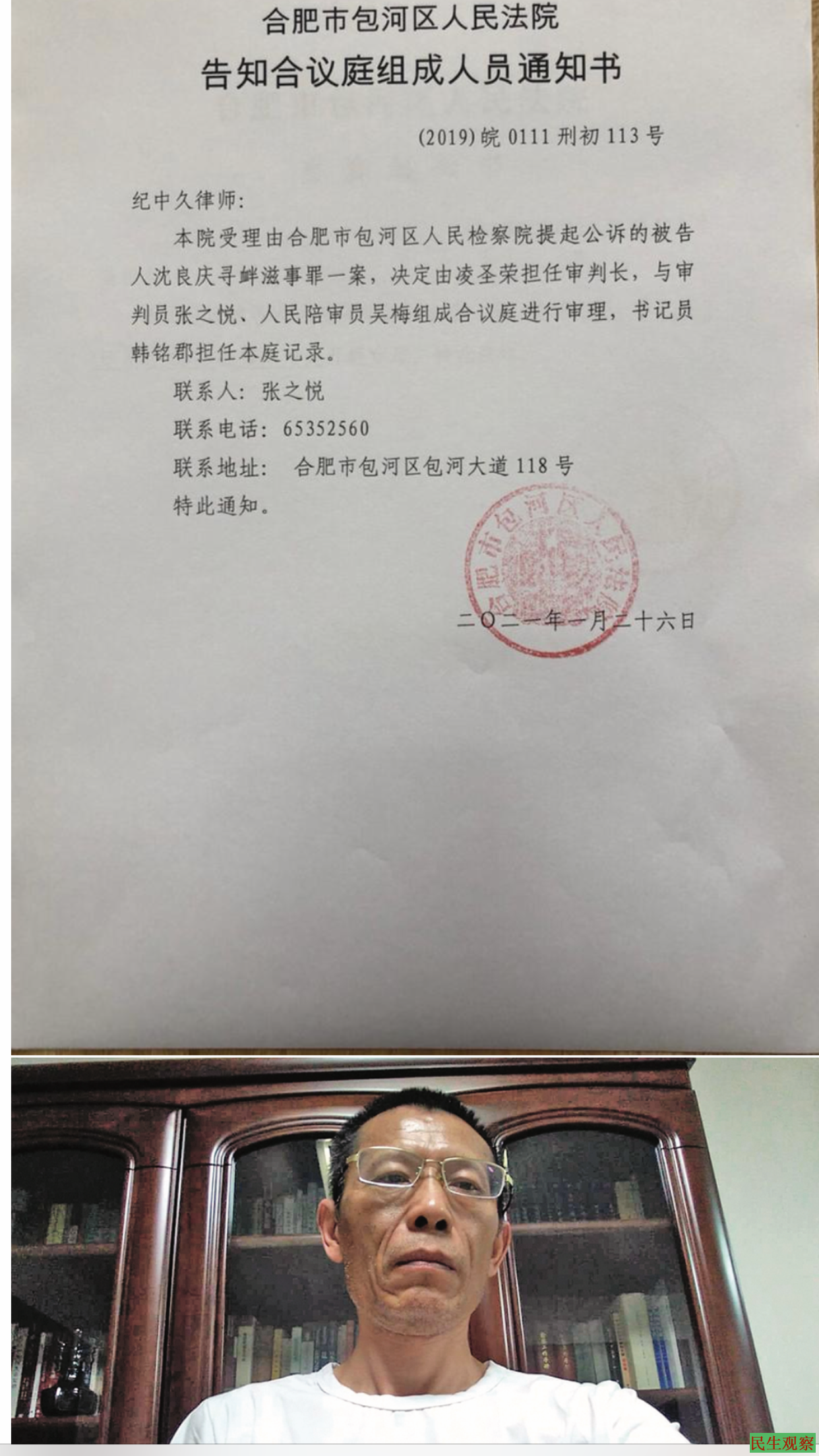 在此之前,律师及家属并未收到包河区法院针对沈良庆被控涉嫌“寻衅滋事罪”一案“不公开审理”的通知,律师称,开庭后法官才宣布。