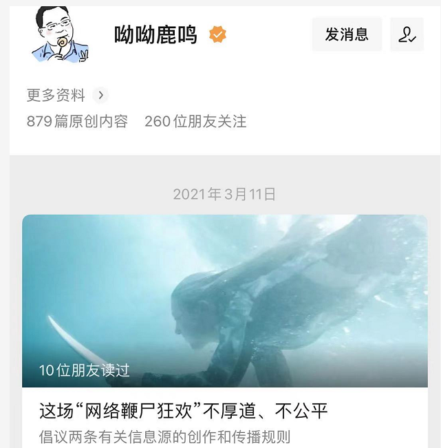 呦呦鹿鸣之前就因为文章被人威胁过,只不过这一次威胁他的人更多。