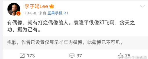 有一个叫李子旸的学者,在新浪微博上多次发表侮辱袁隆平的言论,公安机关就不敢动他。