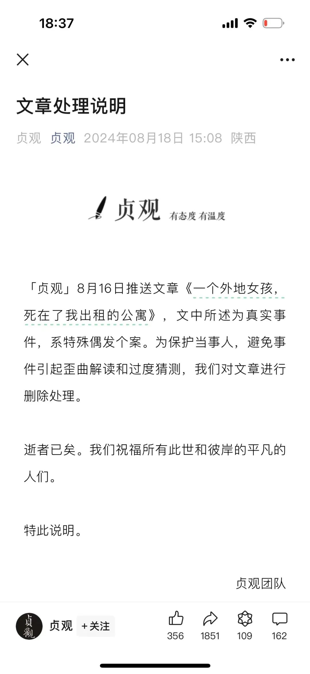 因为某种压力,这篇文章被作者自行删除了,但我毫不怀疑这个故事的真实性。“压力“来自于它传递的是一种负面信息,但一个基本常识是,那些被称为负面的事物,不是不让被看见就真的不存在。