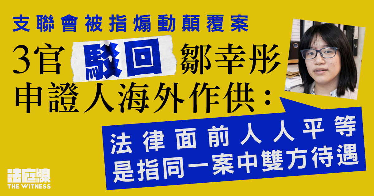 支聯會及其前正副主席李卓人、何俊仁、鄒幸彤被控「煽動顛覆國家政權」一案,鄒去年申請海外證人以視像方直播式作供,並爭議政府推動「23條」立法修例是針對其申請。3 名高院指定法官即日駁回鄒,並於周一(10 日)頒下判決理由。