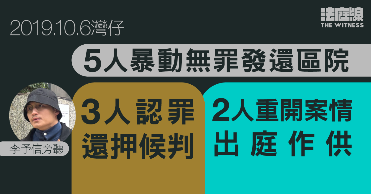 律政司不服決定,以案件呈述方式提上訴,上訴庭去年裁定上訴得直,撤銷 5 人暴動罪的無罪裁決,發還原審重新考慮。