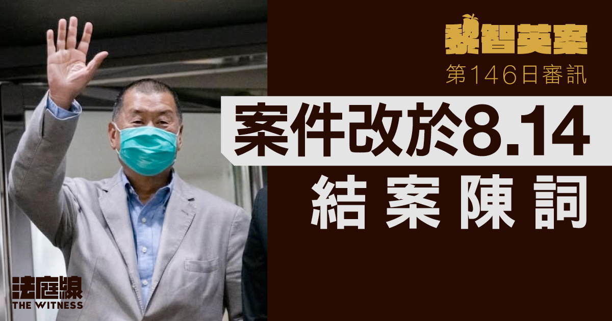 另外,案件原訂 7 月 28 日結案陳詞,但該日與另案日子重疊,法官決定改於 8 月 14 日結案陳詞,預料需時 8 天。控方另確認會依賴終院在譚得志煽動案的裁斷,即控方毋須證明煽暴意圖;辯方則透露,不爭議控方專家證人有關制裁的報告。