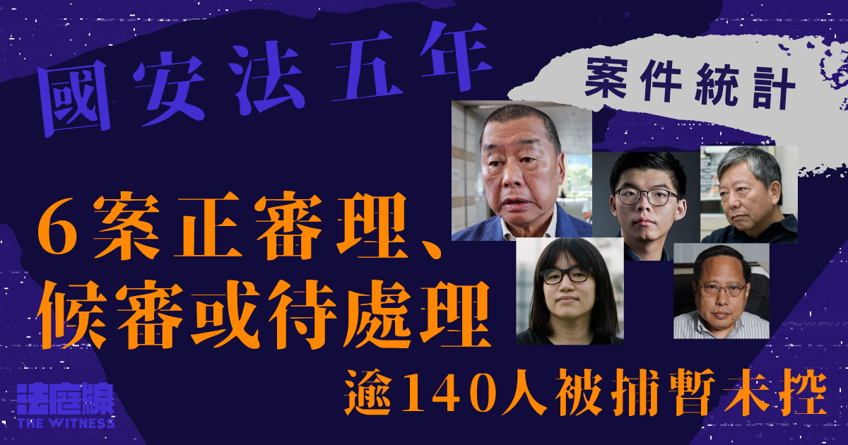 香港進入「國安時代」5 年。政府就危害國安罪行或活動,累計拘捕 332 人,檢控 189 人。《法庭線》統計,綜合《國安法》、「23 條」及舊煽動罪,至今共 61 宗國安案件進入法庭,55 宗已完成原審階段。