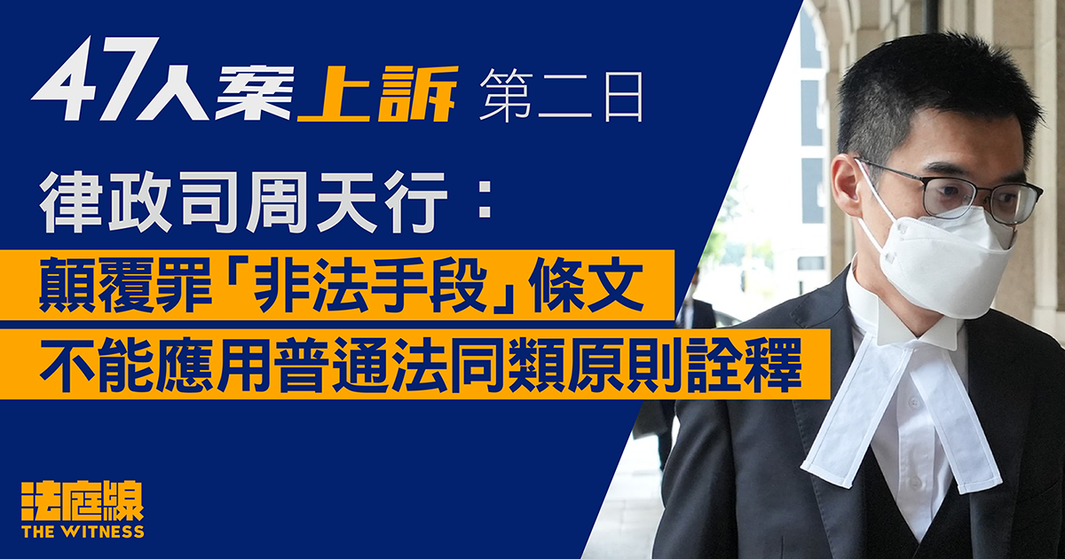 47人案上訴|律政司陳詞:被告方立足錯誤  顛覆罪若僅限武力違《國安法》目的