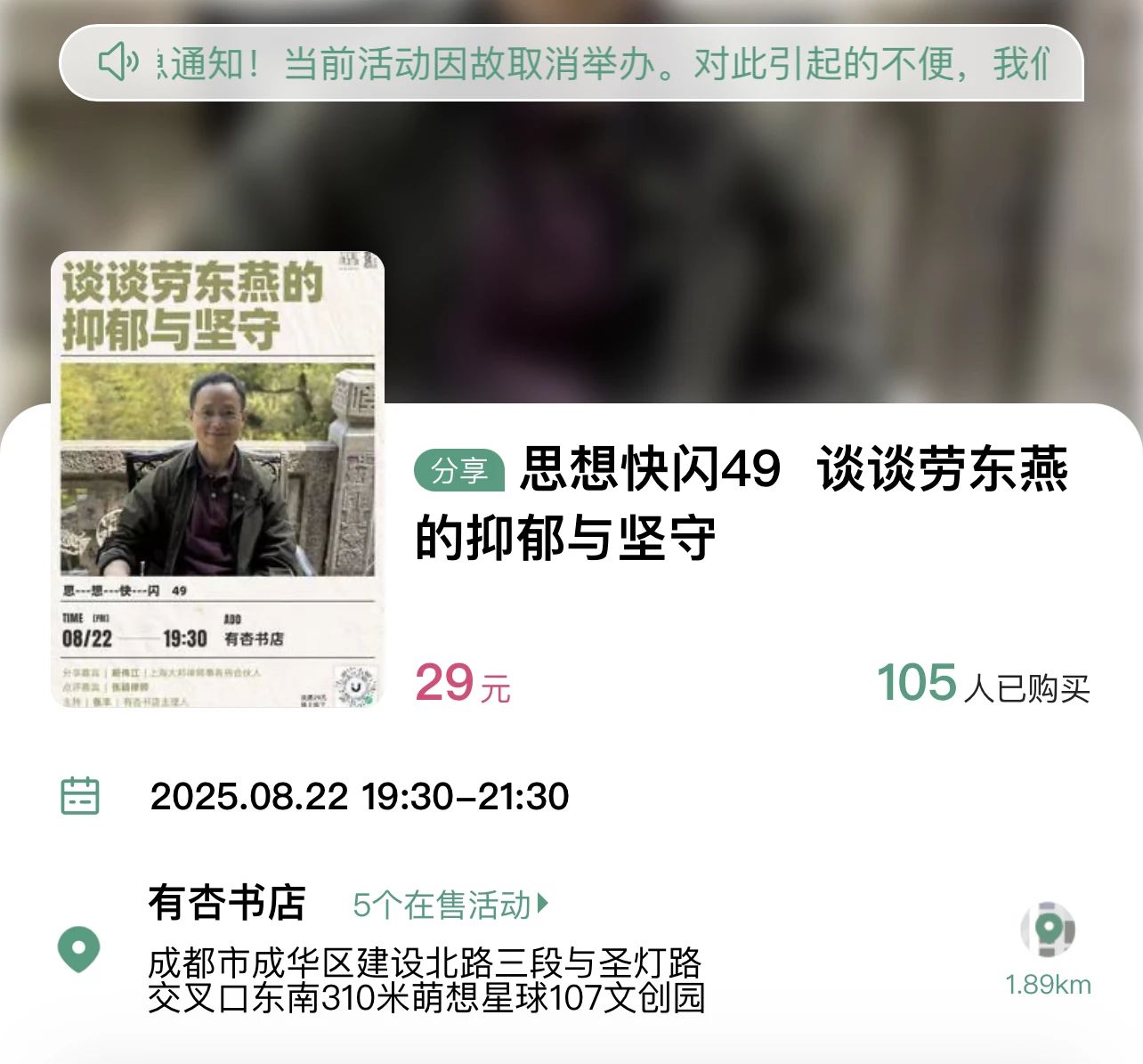 我也不想像有些朋友所说的,换一个主题,或者搞成闭门分享——我的原则是一切活动都是公开的。