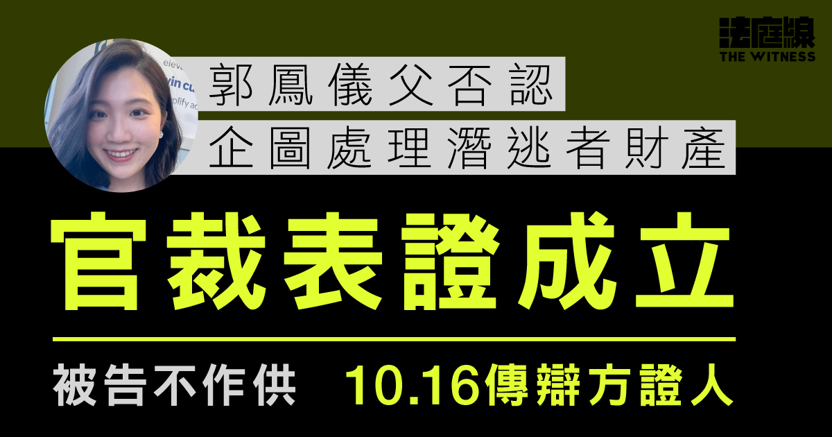 遭警方國安處通緝的「香港民主委員會」執行總監郭鳳儀,其 68 歲父親郭賢生被指企圖處理女兒的保單,被起訴「23 條」下企圖處理潛逃者財產罪。案件周四(9 日)在西九龍裁判法院踏入第 2 日審訊。