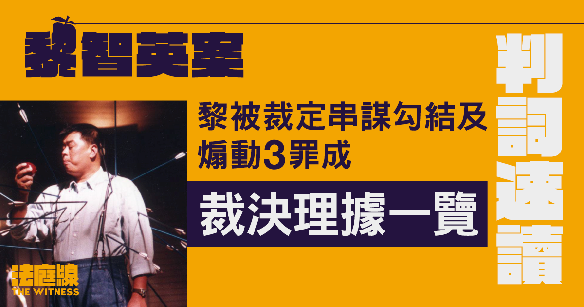 855 頁判詞,詳細列出各證人的供詞、黎在《蘋果》的參與、其國際聯繫、有何政治理念等。判詞強調,黎並非因其政治立場受審,但法庭須了解黎的政治立場,以評估其意圖及目的。《法庭線》根據判詞內容,扼要整理案中主要爭議的裁決理據。