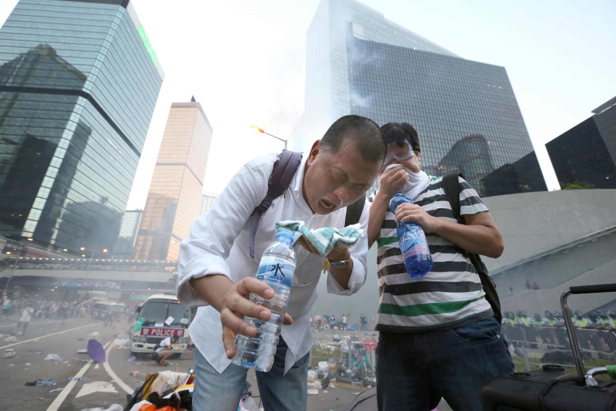 到2014年「雨傘運動」,黎智英甚至走上街頭,在全無裝備、只有一條毛巾掩着口鼻的情況下遭到催淚彈攻擊,被人捕捉到他痛苦地用清水洗面的畫面。長達79天的佔領運動,在警方清場下終結,當時黎智英更主動站出來接受被拘捕。雖然最終未被起訴,但為了保護壹傳媒,避免因為他的政治參與而受打壓,他辭去所有職務。