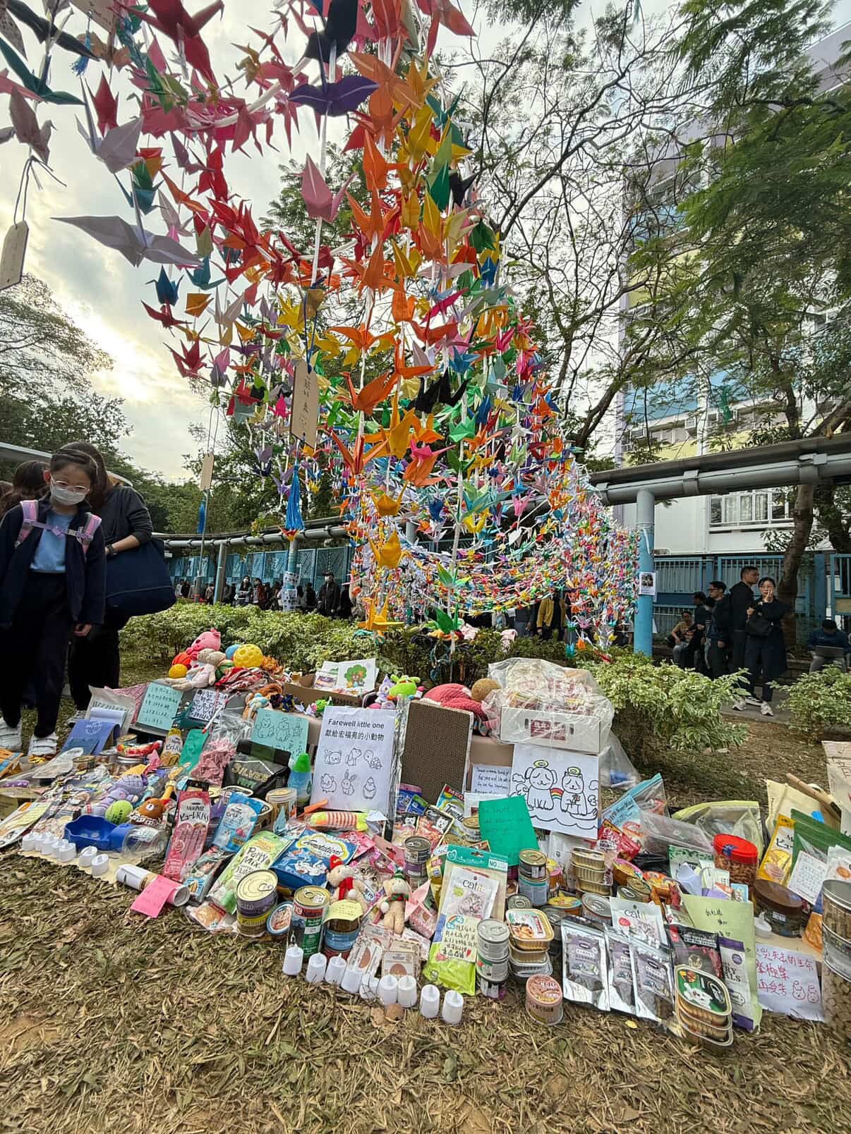 有网友在社交媒体平台指,民安队曾要求收起全部“纸鹤帘”,有义工极力争取才保留下一条,最终大家一起帮手把它改造成架空的纸鹤彩虹桥,寓意“毛孩们都能由此登上极乐世界”。“我们知道,’头七’晚上,好多过来的人借折纸鹤舒缓情绪,更是各位市民一番心意,我们想好好地珍惜,重视这个机会,把纸鹤彩虹桥暂时留在广福公园。”
