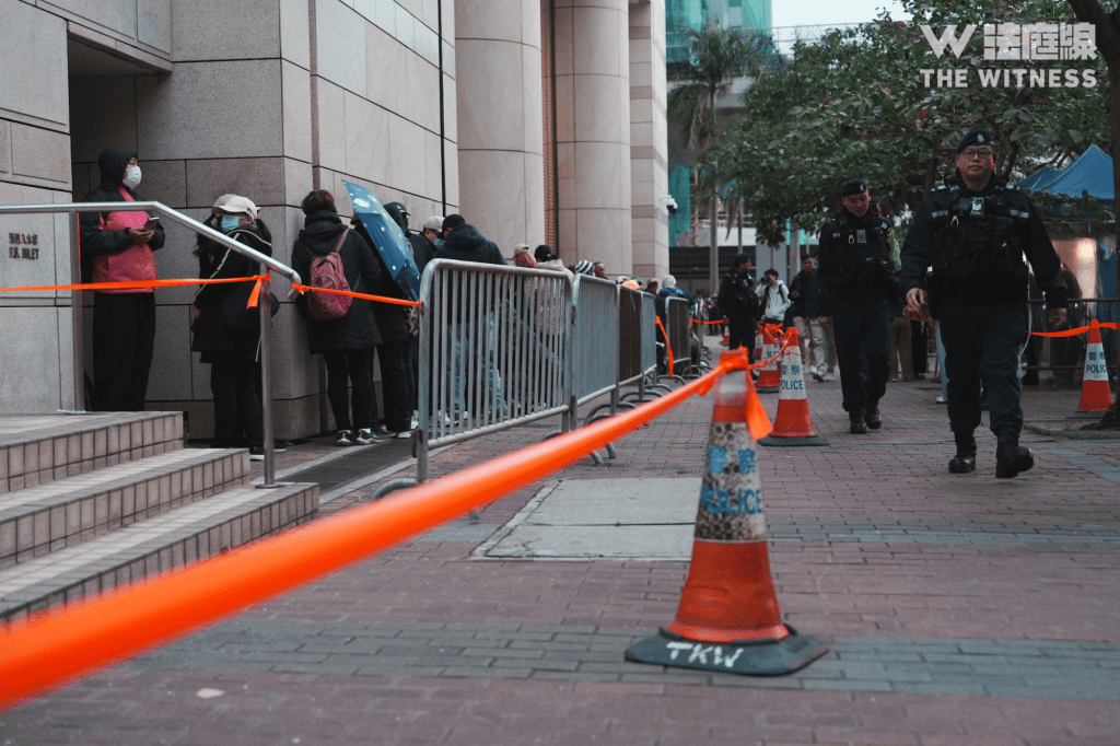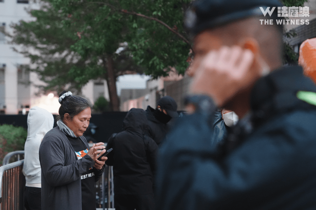市民 B 亦指,有由周四晚開始排隊的市民,短暫離開後未能進入人龍,「(警員)話上一更交畀佢哋個名單冇佢個名」。B 又指,法院附近的垃圾桶均遭紙皮封口或遭搬走,曾詢問現場警員「邊度有垃圾桶」,指對方回應「我哋幫你唔到,你去搵吓啦」。