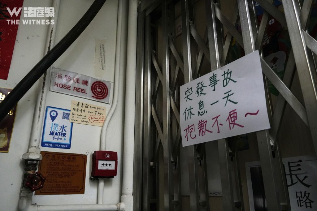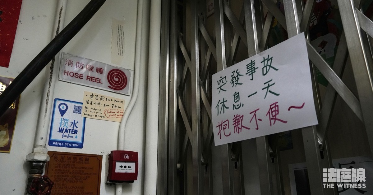 《法庭線》記者周二下午約 4 時半到「一拳書館」,發現已拉閘,而鐵閘貼有告示,稱「突發事故 休息一天 抱歉不便~」。警方回覆指,採取任何行動均會按實際情況,依法處理。