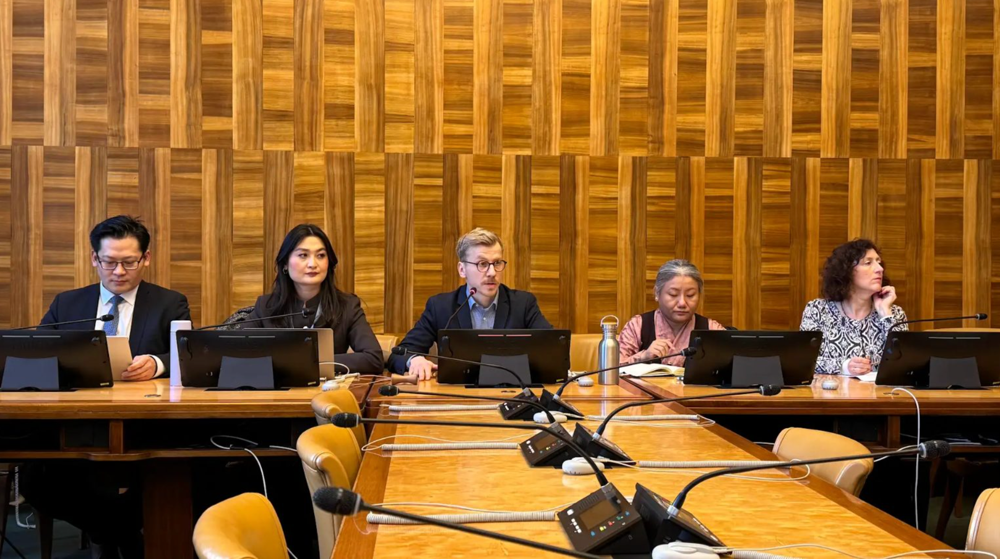 藏人行政中央驻日内瓦办事处代表赤列曲吉、“世界维吾尔代表大会”代表祖姆热提·阿肯(Zumretay Arkin)、法轮功群体代表丁乐斌,以及来自12个联合国成员国常驻代表团及民间社会的40余名代表出席了会议。