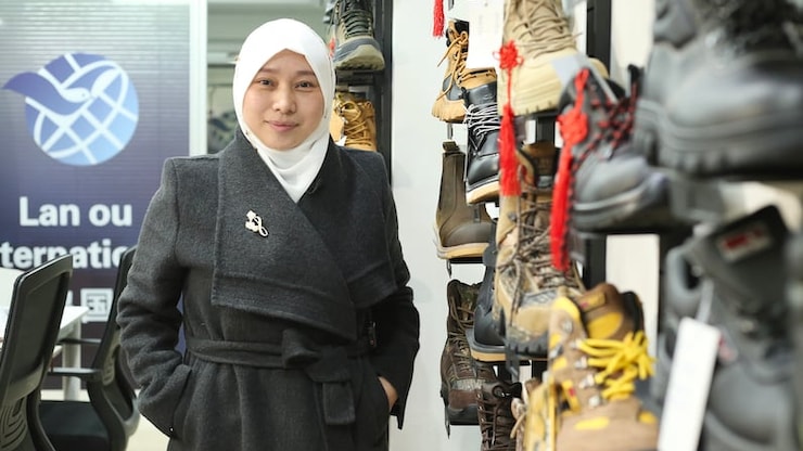 丁素阿(译自Suad Ding)在义乌拥有一间展厅,专门向全球买家销售安全靴、防护设备及相关用品。