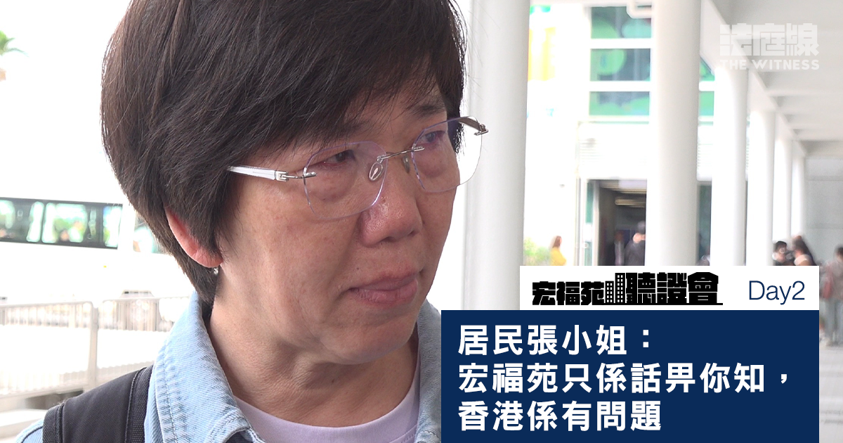 她指,「我哋宏福苑呢單,只不過係今日香港所發生嘅其中一件事,再咁樣落去,仲有其他嘅事情,一路會發生⋯⋯宏福苑只係話畀你知,香港係有問題」。張小姐又指,「如果有人肯做啲嘢,或者唔係咁多錯誤一齊發生,就唔會有今日」。她指政府需要執法,「唔執法,淨係捉我哋過馬路有咩用呢?」